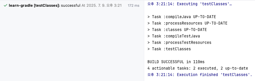 결과적으로 compileJava, processResources를 실행한다.